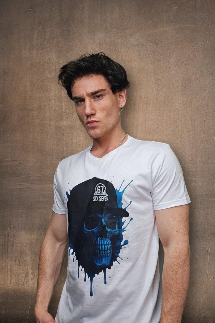 Blue 67 Skull White
